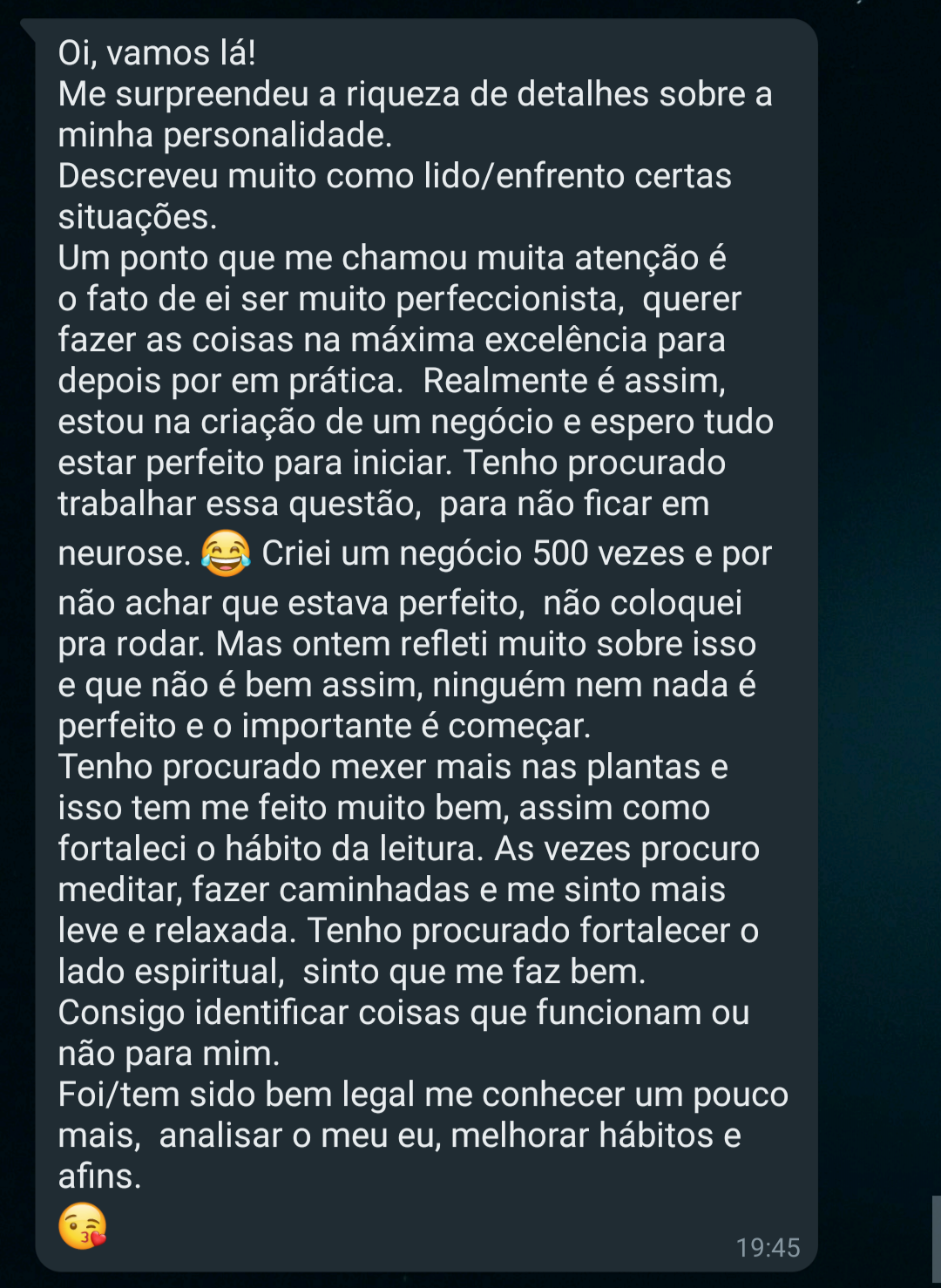 Eu entendo o desafio de equilibrar muitas ideias e o desejo de realizar. Por isso, uso a minha experiência para ajudar você a construir uma presença consistente, que faz sentido para a sua rotina e para os seus objetivos.