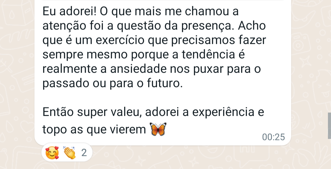 Em um Grupo silenciado, você recebe orientações práticas e possíveis para direcionar a energia da sua semana.