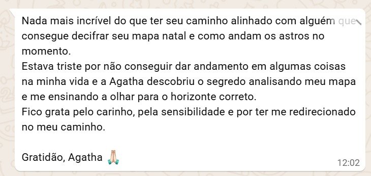 Através do seu Mapa Astral, eu te ajudo a simplificar o caminho. Com a Astrologia você pode conquistar a clareza para tomar decisões, entender alguns padrões emocionais, descobrir seu propósito e dar o próximo passo para a realização mental, espiritual e financeira. Não espere mais. Comece hoje.